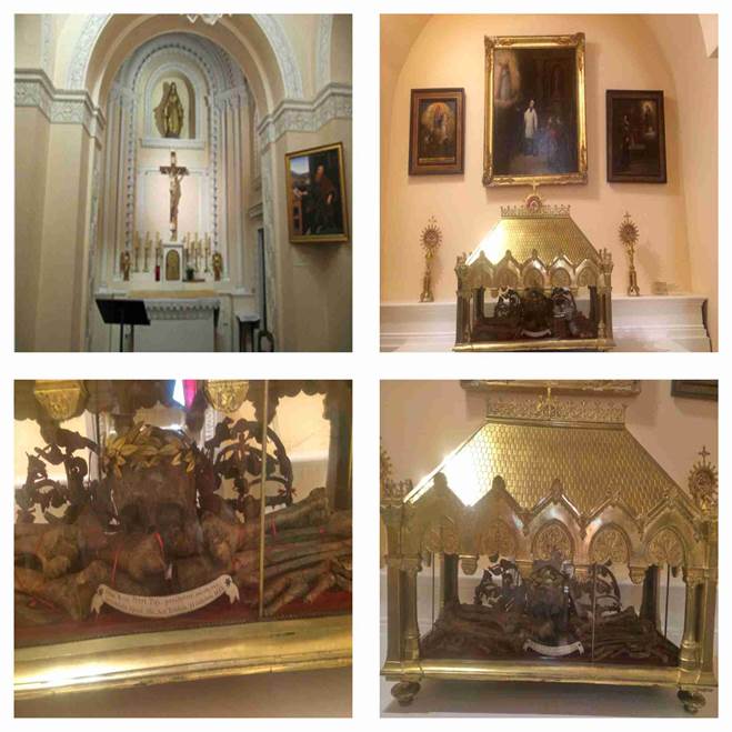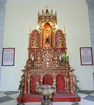 Bàn thờ thờ kính Cha Thánh Tùy và lưu giữ hòm xương từ năm 1902